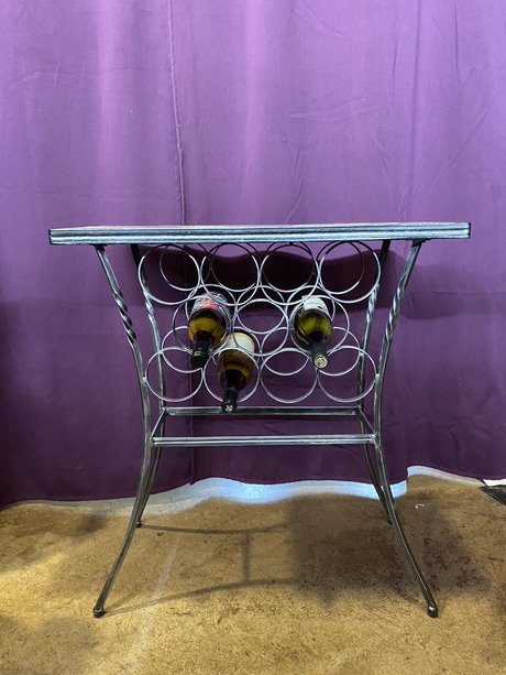 Elevate your wine experience with this lovely wine storage table featuring a beautiful mosaic top. It's not just a piece of furniture; it's a conversation starter, a work of art that adds a touch of sophistication to your space.